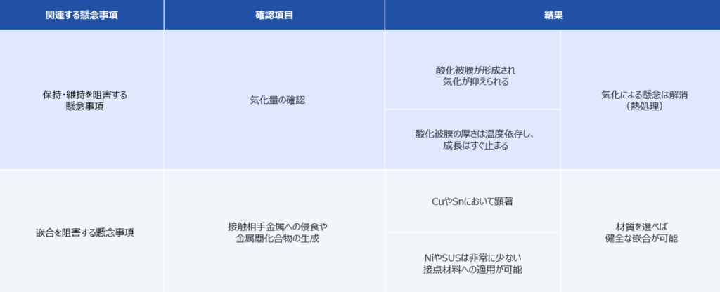 一方でコネクタにする場合の懸念点として下記の個体金属との関係性に懸念があります。
