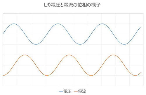 ・電圧と電流の位相は図のようにずれる