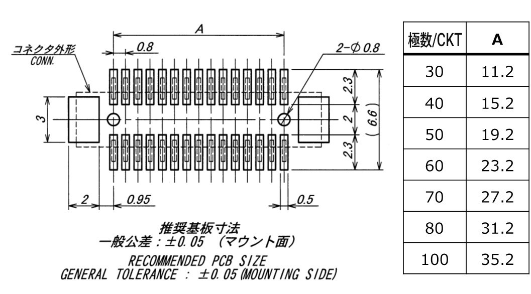 4.8/6.8/7.8mmの3種類の高さグループを持つプラグコネクタです。推奨基板レイアウトは高さグループをまたいで共通です。