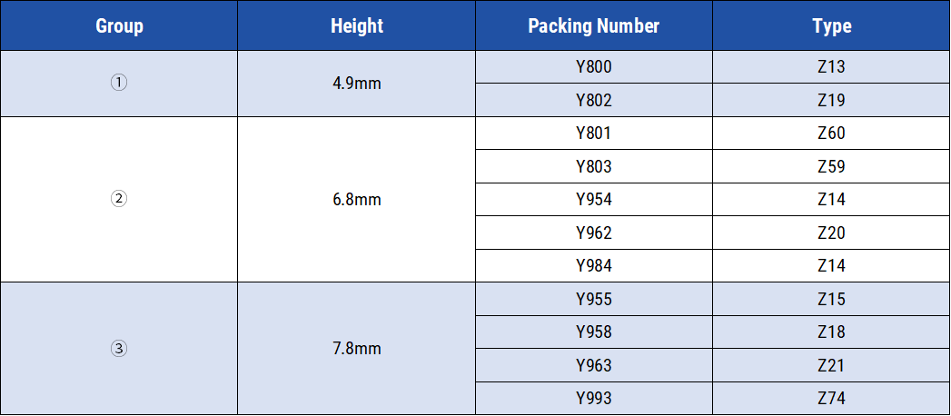 めっき仕様違いで2タイプがあります。梱包資材、仕様違いによって、梱包番号は4種類になります。