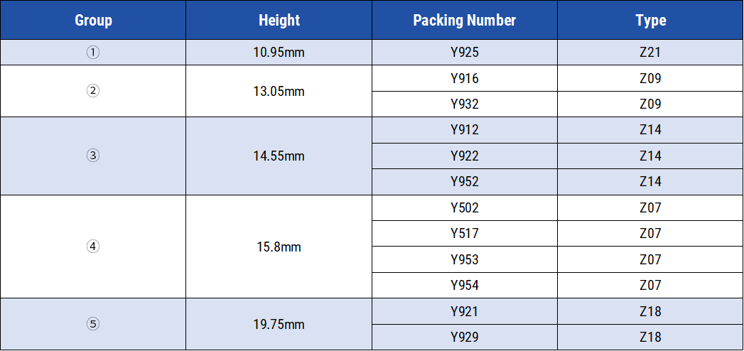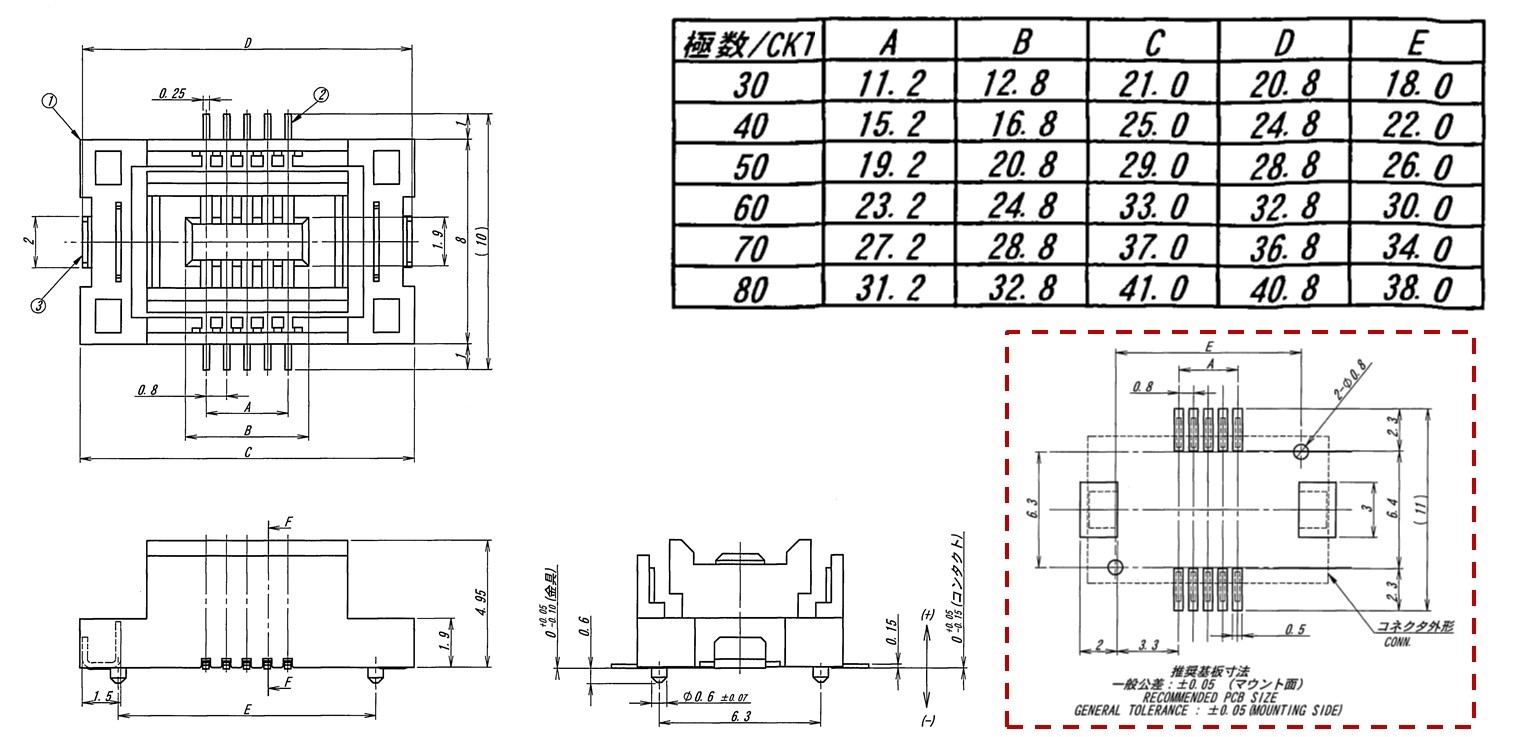 10.95/13.05/14.55/15.8/19.75mmの5種類の高さグループを持つプラグコネクタです。基板レイアウトも高さに応じて変化します(一部共通)。