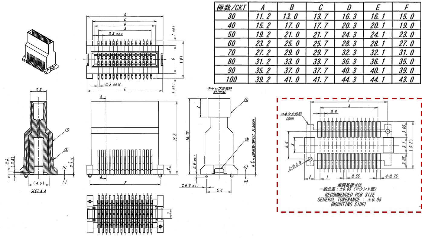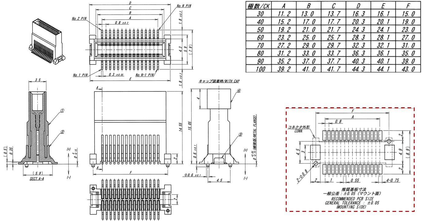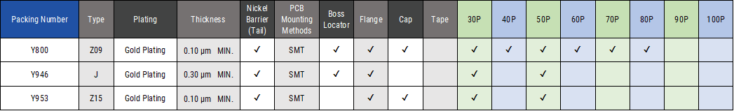 ・ 基板実装強化タイプあり(ソケット・プラグとも30極のみ/ディップフランジ)