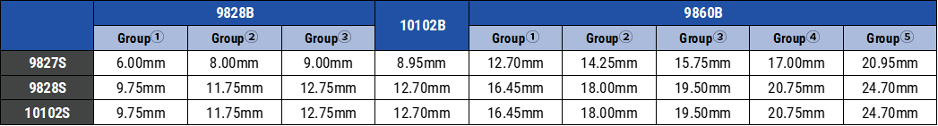 10.95/13.05/14.55/15.8/19.75mmの5種類の高さグループを持つプラグコネクタです。さらに、めっきやボスの仕様の違いのオプションにより12タイプに分かれます(各仕様のオプションは、「仕様から選ぶ」の9860Bシリーズをご参照ください)。