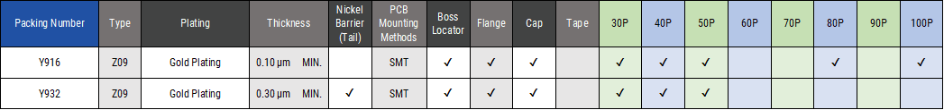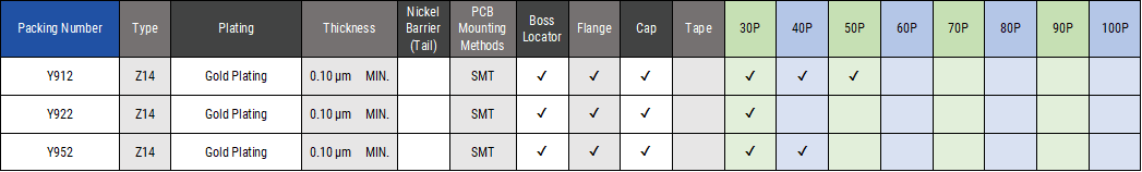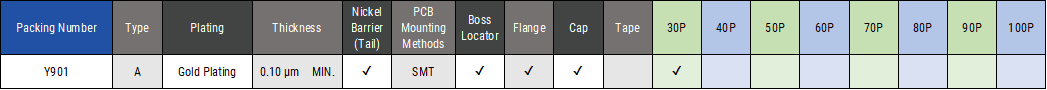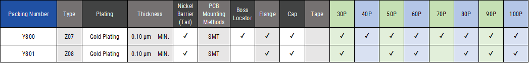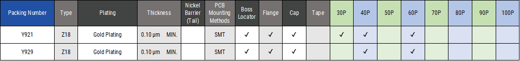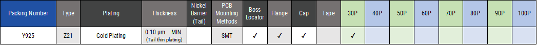 9828Sをベースにディップフランジにより基板への固定を強化したタイプです。1タイプ、30極品のみのご用意となります。
