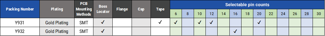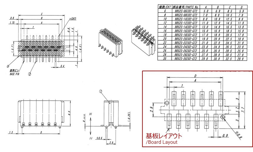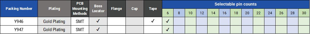 | 本体高さ | めっき | 基板実装方法 | 対象製品 |