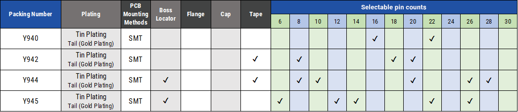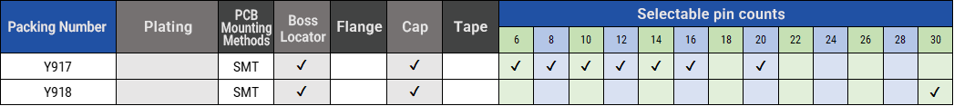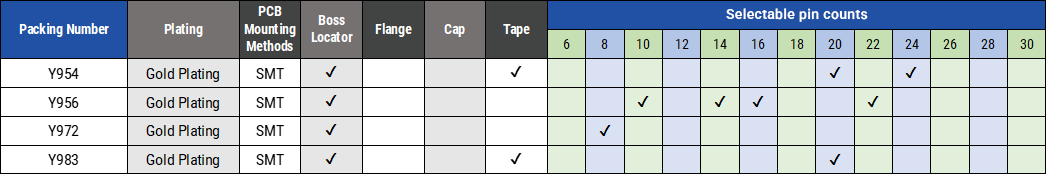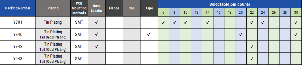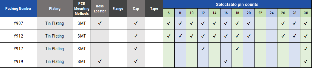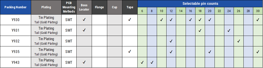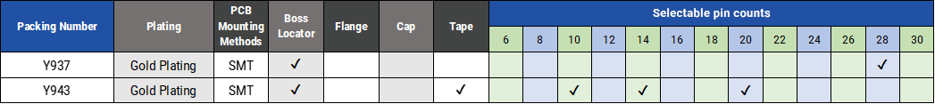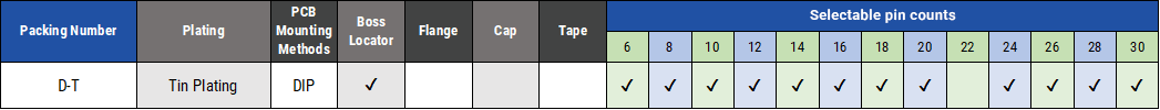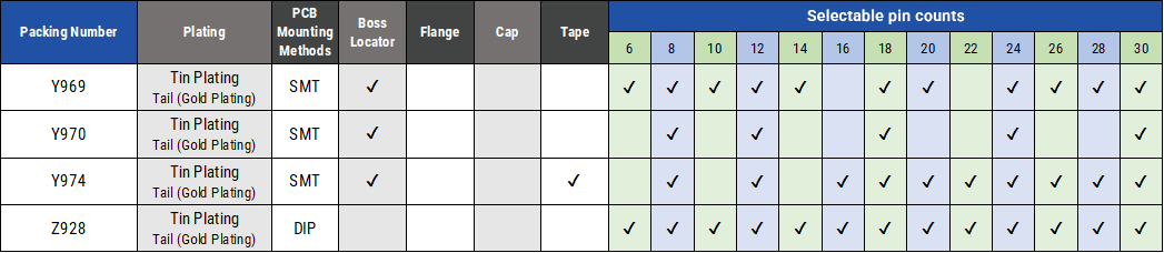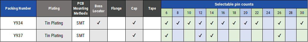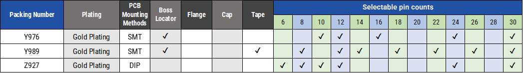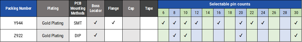 ・ 各シリーズ、極数・固定ボス・基板実装方法、メッキ種類等の多彩なオプションをご用意