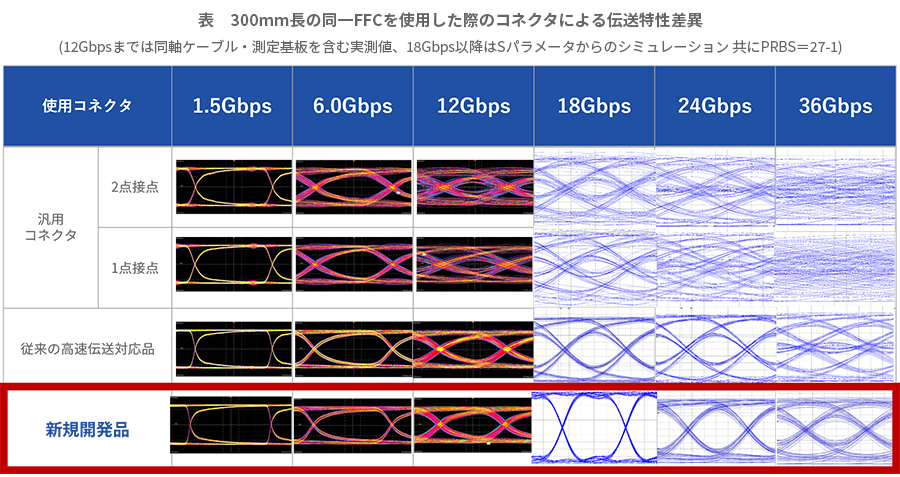 今回のソリューション開発では、低反射のコネクタを開発するとともに、仕様線材とのマッチングを見ながら開発を進めていく必要がありました。特に、より安価でより高い伝送特性が期待されるFFCに関しては、今回の目的より低い周波数帯で、より長い距離に向けて開発されたものだったため、いくつかの供給メーカ様の協力を得ながら評価と開発を実施しました。結果、従来の高速伝送タイプに対して、大きく性能を改善したコネクタのリリースへとつなげることができました。