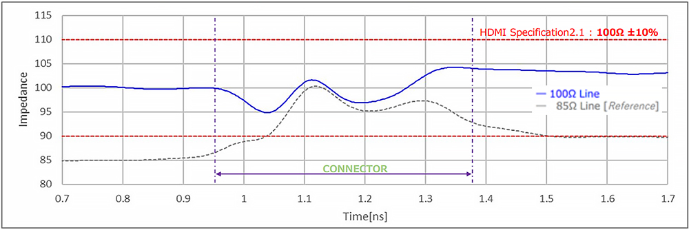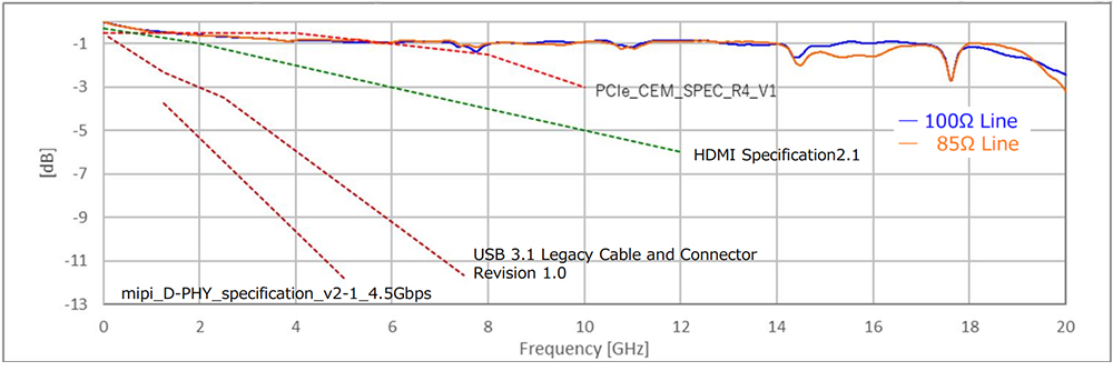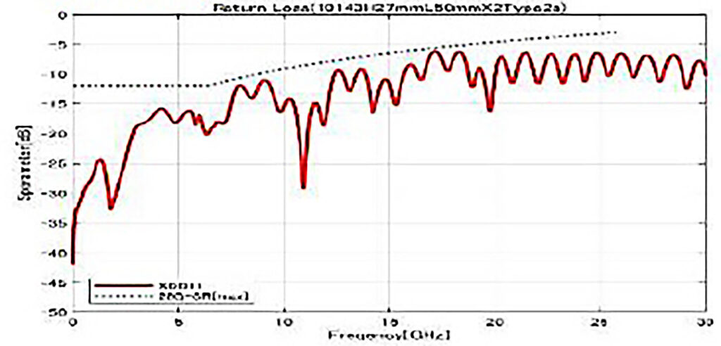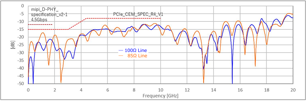 各種Sパラメータ閾値に対しまして、良好なデータを示しており、特性インピーダンスは各種伝送規格に対応出来る様に調整されています。