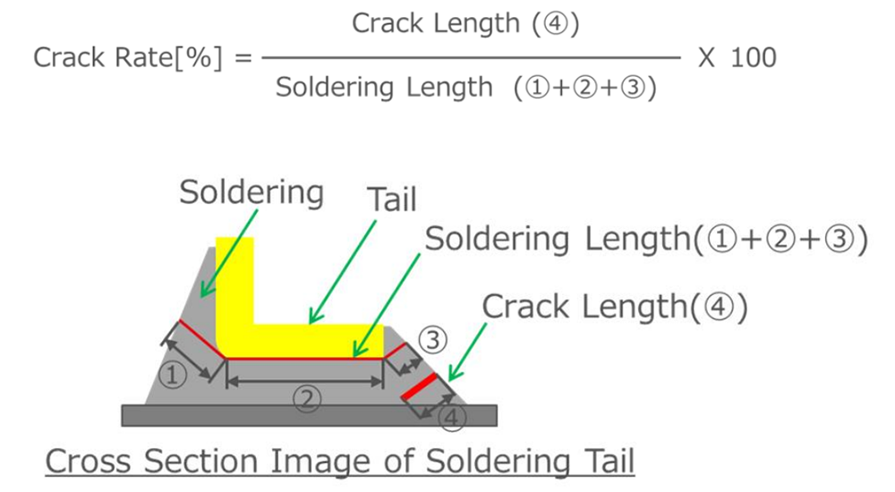 許容フローティングレンジ内での位置ズレ状態を想定し、最大フローティング時の意図的なストレスを負荷、半田クラック発生状況を検証しております。また、断面観察、試験中の抵抗変動観察を行い、半田付け部の状況を確認しております。